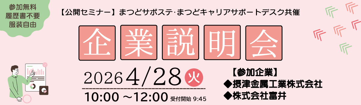 あなたのニーズに合わせて、個別相談(キャリアコンサルティング)、就職準備セミナー、職場見学・体験をアレンジし、就職活動をバックアップします。ぜひお気軽にお問合せください。