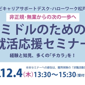 2025.04.24 【公開】職業興味検査から見えてくる適職探索in ハローワーク5階 イベント詳細 このイベントは21 8月 2025に終了しました 会場: ハローワーク松戸 カテゴリ: 公開講座【企業説明会・体験等】 簡単な質問に答えるだけで、あなたの職業に対する興味の傾向や、自分に合う仕事が見えてきます。働き方を考えるヒントが見つかります。 定員 12名 会場 ハローワーク松戸5F会議室 【限定公開】職業興味検査から見えてくる適職探索 【まつサポコミュニティ】メンタルトレーニング~ちいさな気づきが自信につながる~ 関連記事一覧 「長所〝再発見〟プログラム」 【報告】不安・緊張の扱い方(2023/5/12) 企業説明会-2024.3.12 人物写真家による「履歴書の写真」講話&撮影会 【報告】まつどサポステ「松南未来博」に出展 「職業... 【報告】興味から見つけるやりたい仕事 in松戸市青少年...