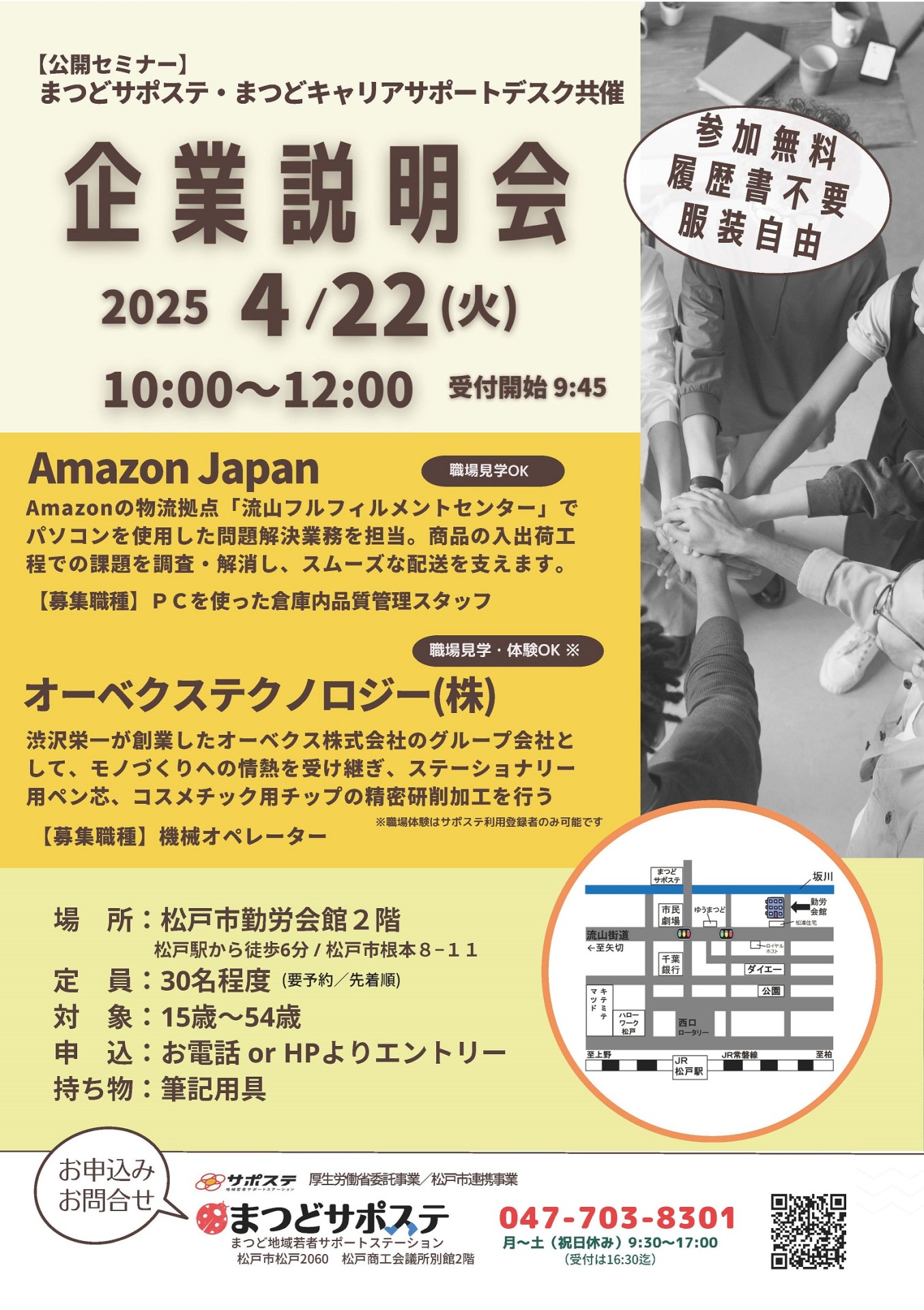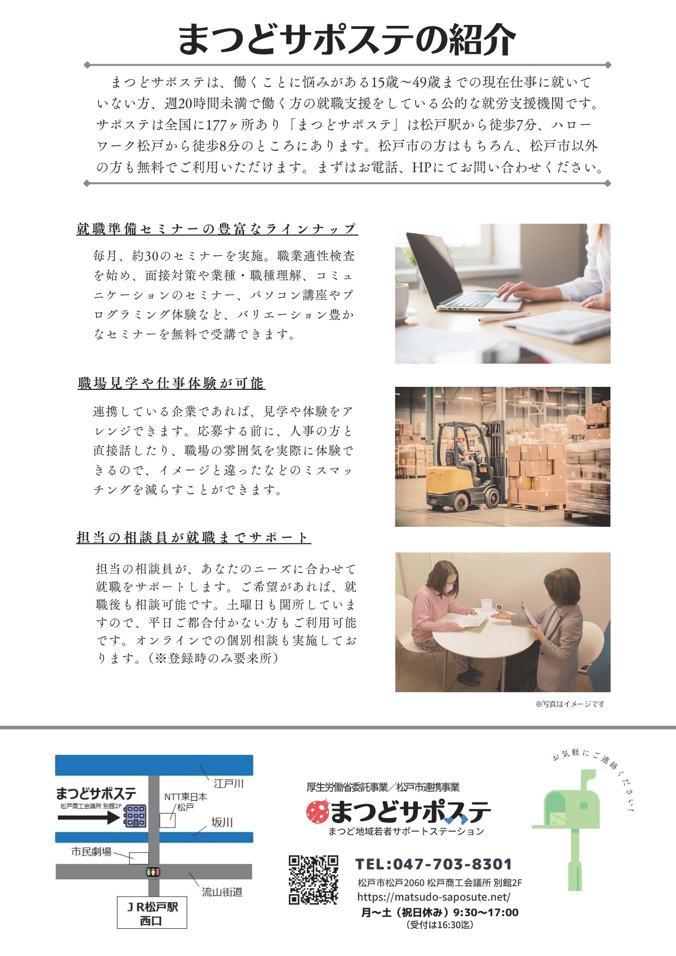 お問い合わせ:まつど地域若者サポートステーションまでお電話ください。