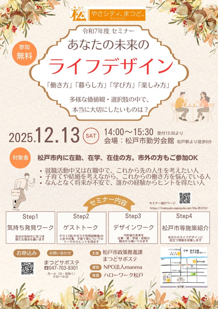 対象:松戸市内に在勤、在学、在住の方。市外の方もご参加OK