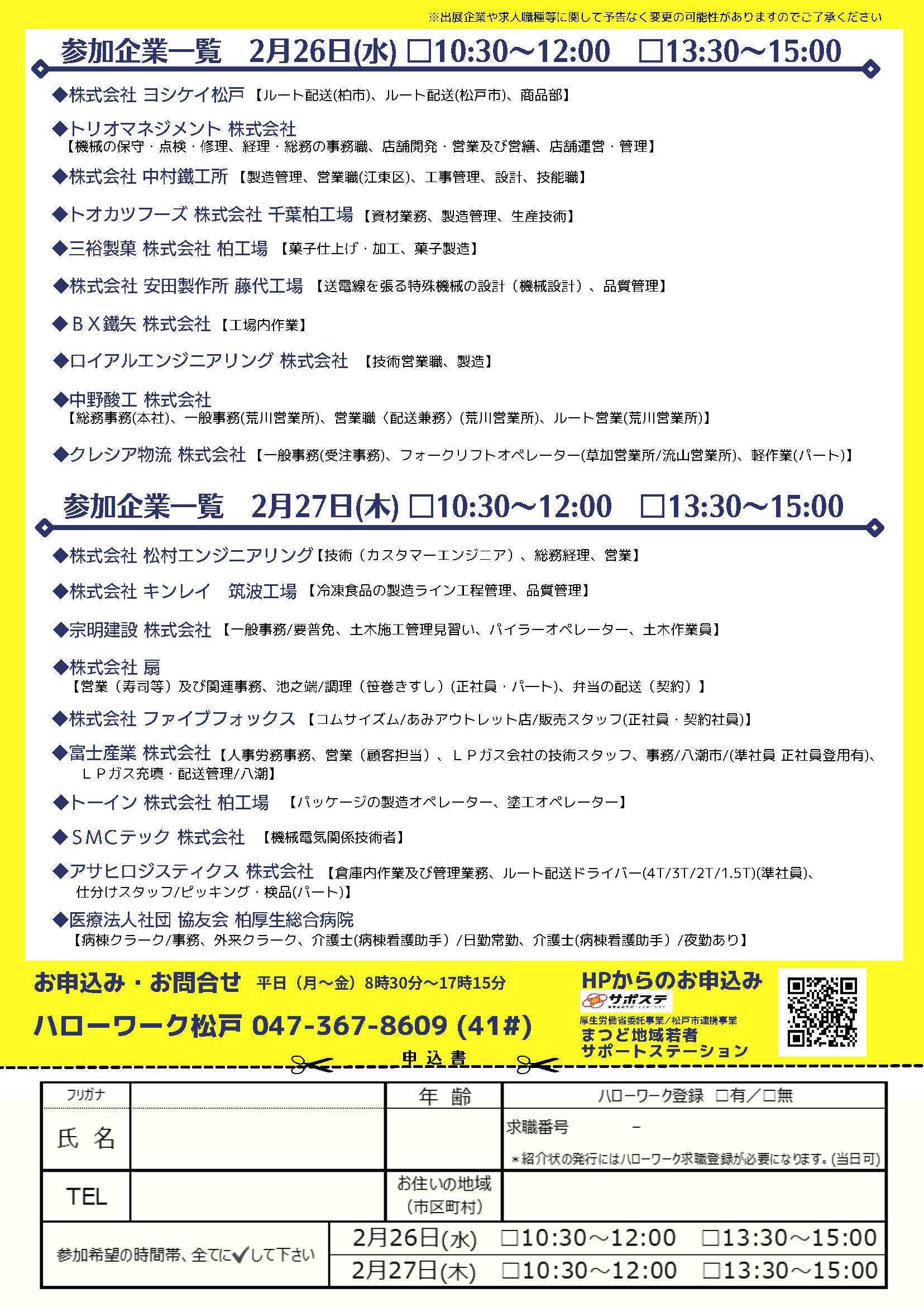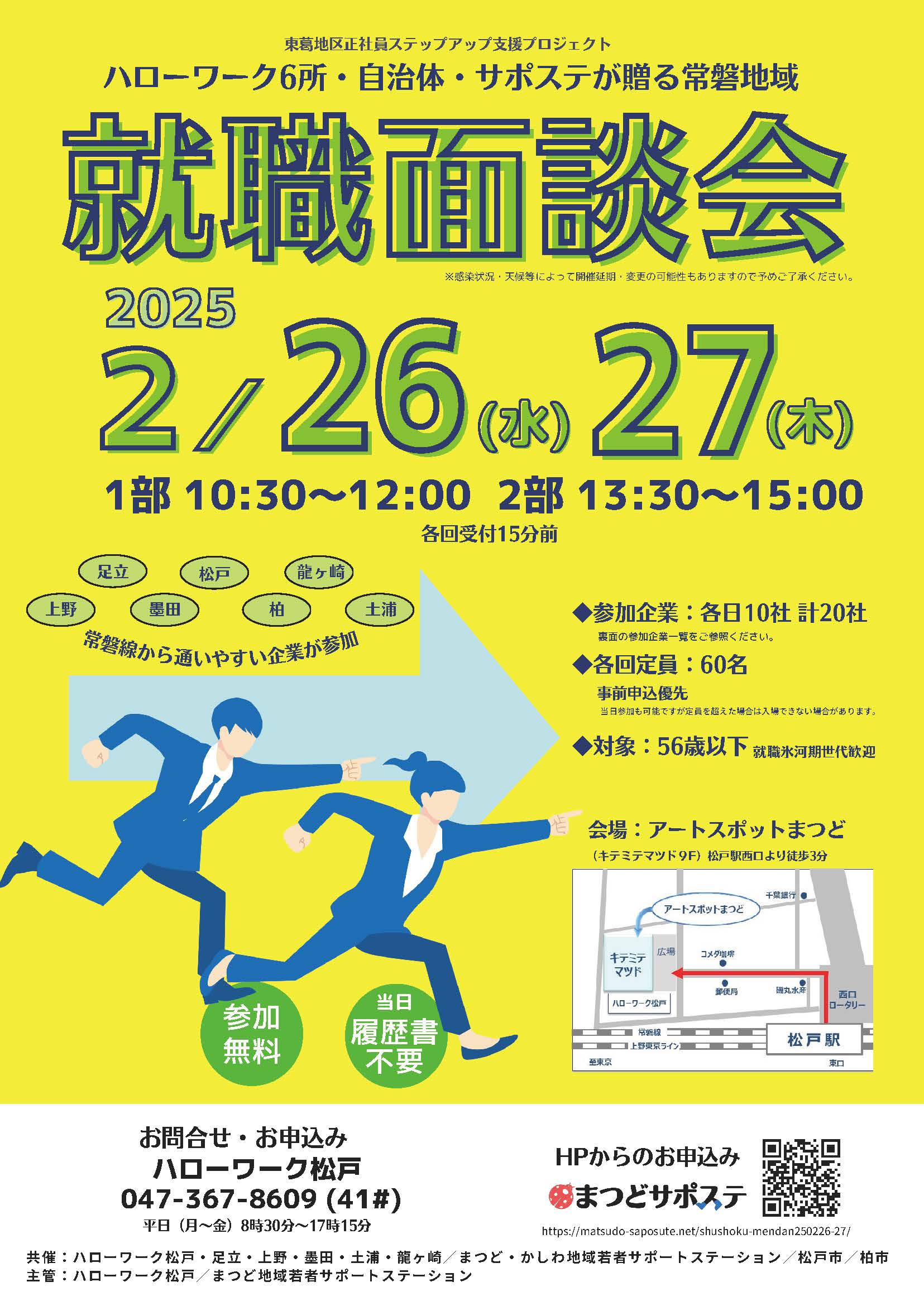 共 催:ハローワーク松戸・足立・上野・墨田・土浦・龍ヶ崎/ まつど・かしわ地域若者サポートステーション / 松戸市 / 柏市